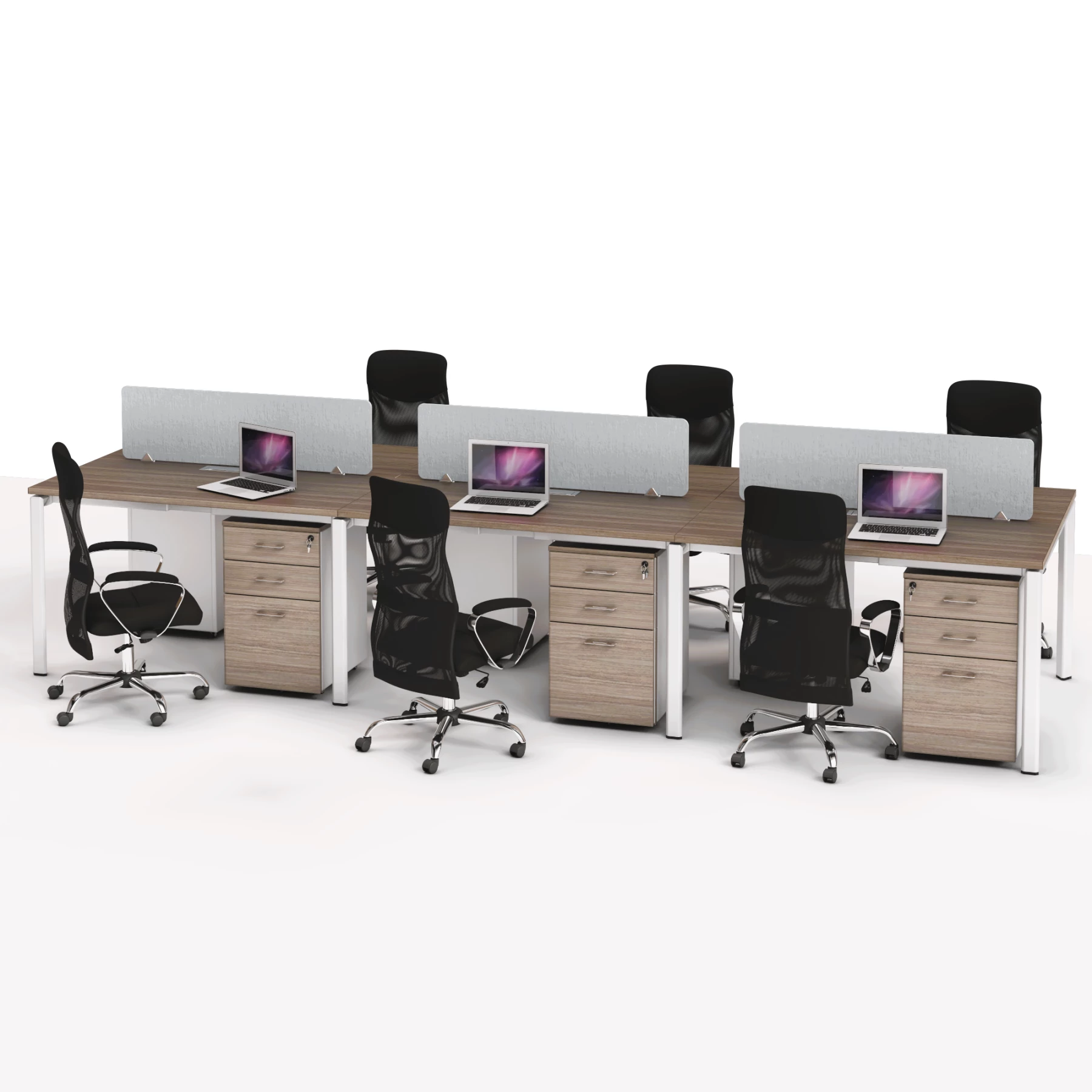 - Configuración Personalizable: Se adapta a tus necesidades. Las cajoneras con ruedas y los paneles divisorios (separadores) son opcionales, lo que te permite crear un espacio de trabajo abierto y colaborativo o uno más privado y organizado, según lo requieras.